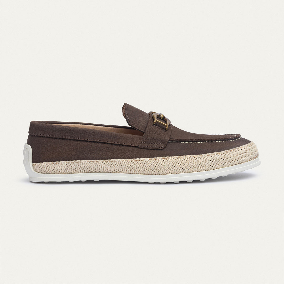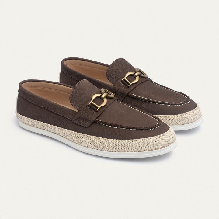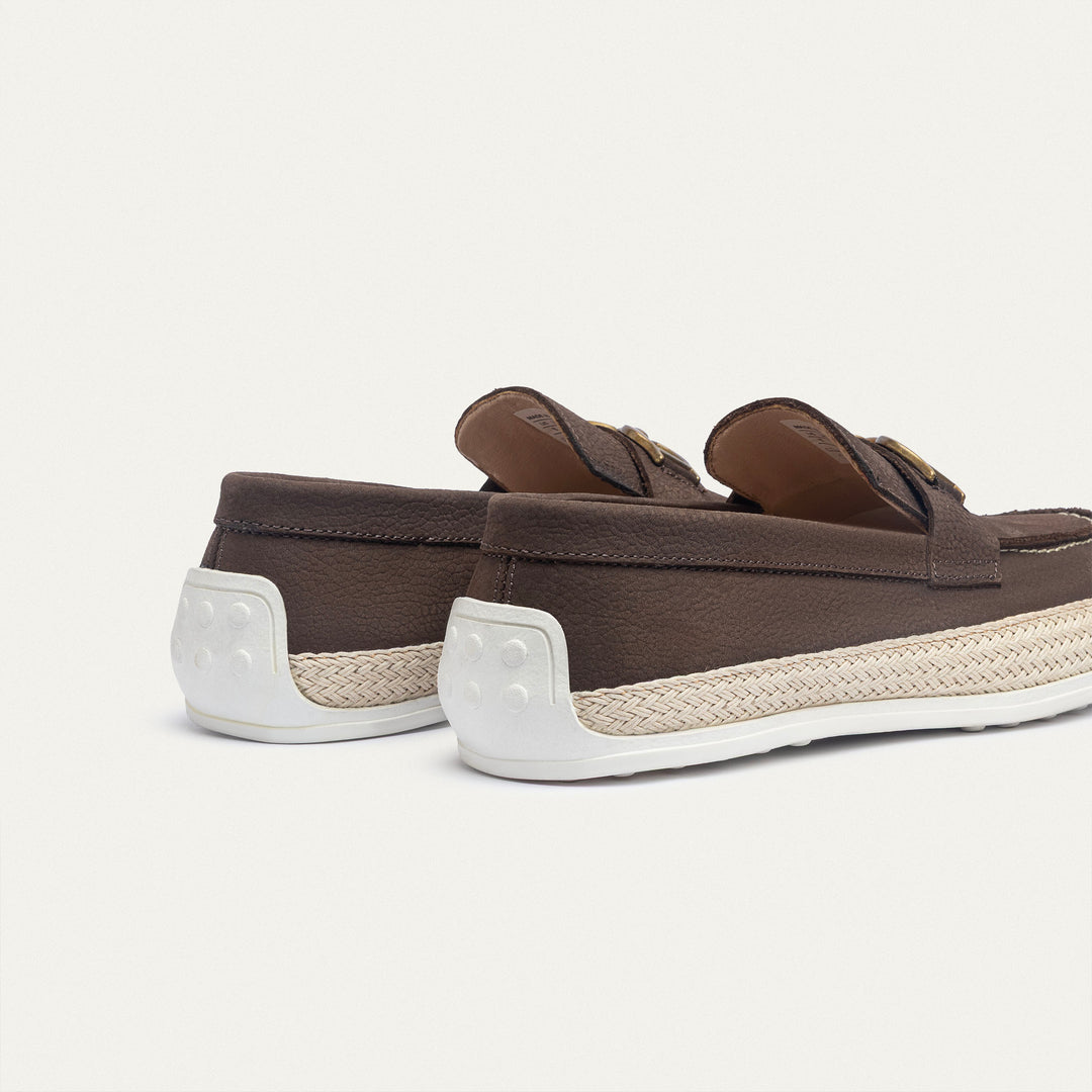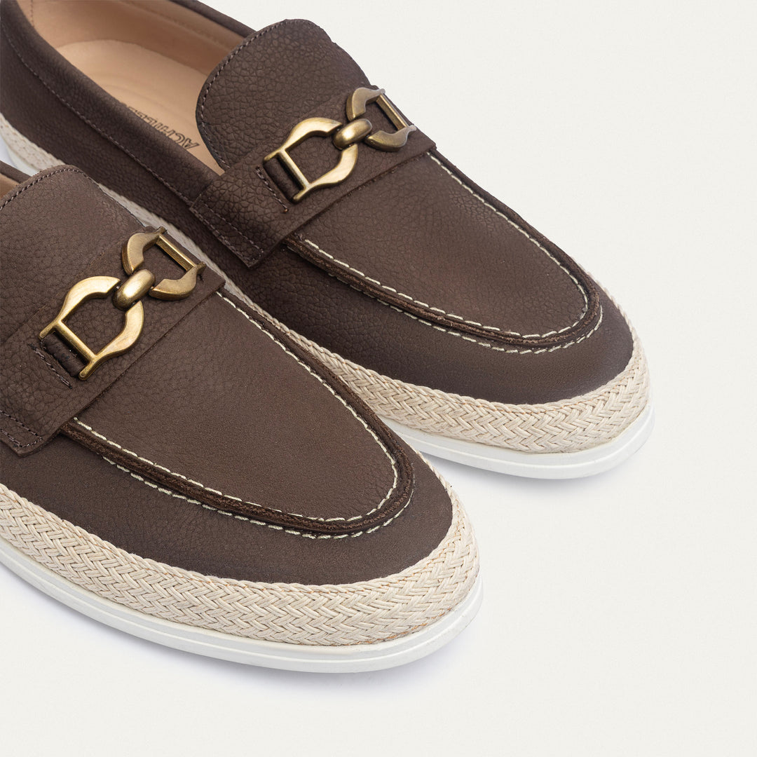 Achilles | Vigo Loafers – Textured Leather Slip-On with Chain Accent -Brown