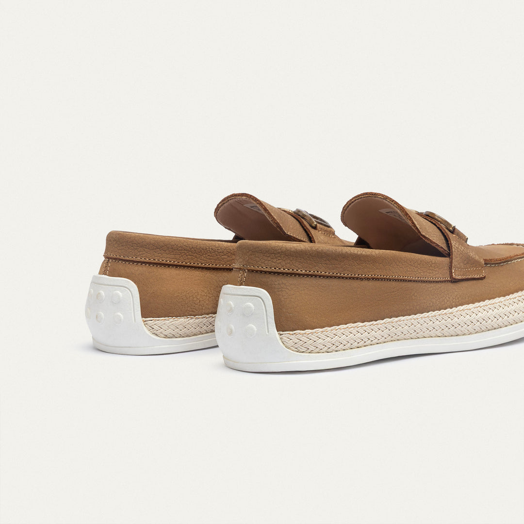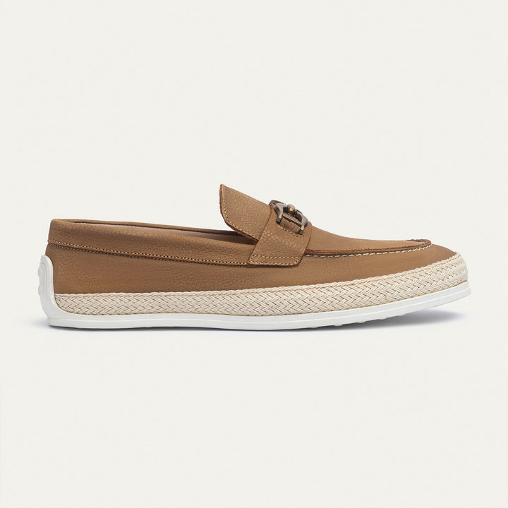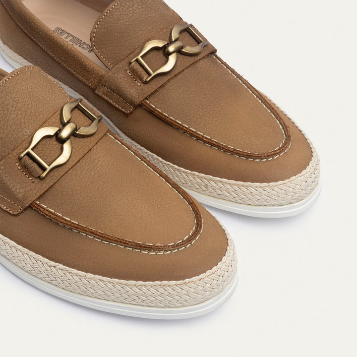 Achilles | Vigo Loafers – Textured Leather Slip-On with Chain Accent -Sandy Brown