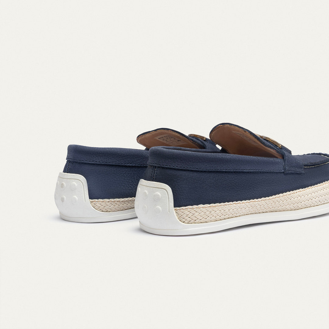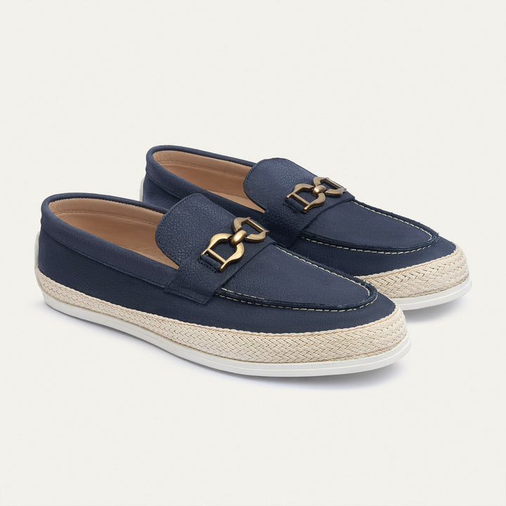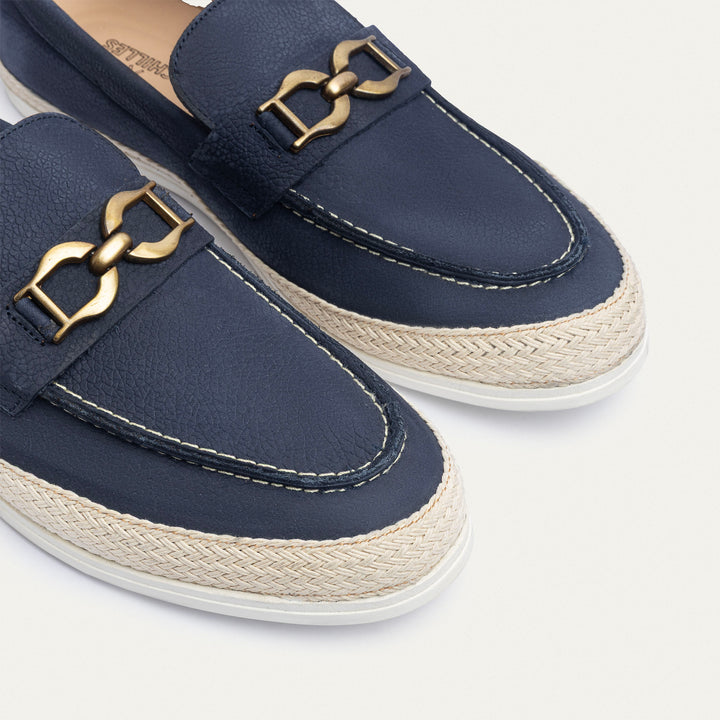 Achilles | Vigo Loafers – Textured Leather Slip-On with Chain Accent -NavyBlue