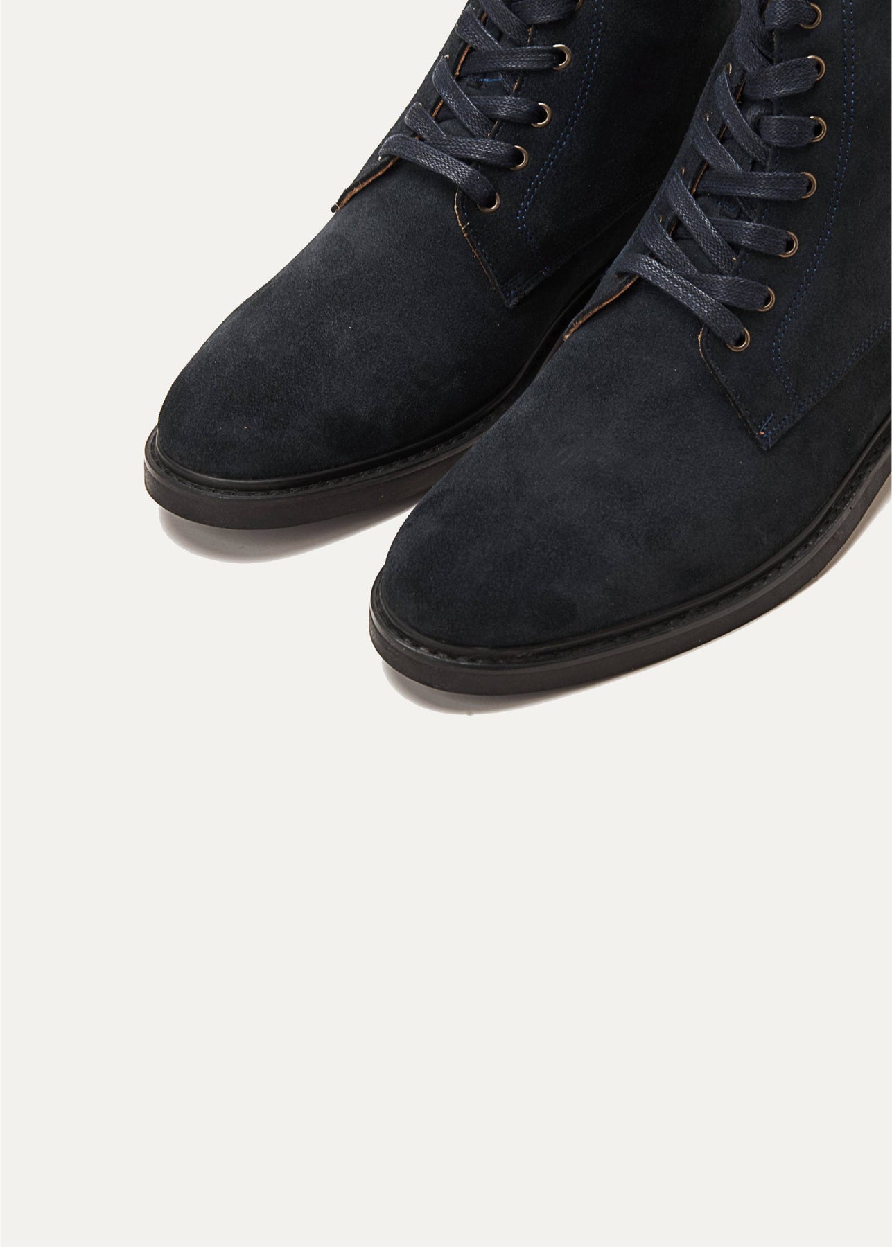 Suede Lace Up Genuine Leather Half Boots - Dark Blue