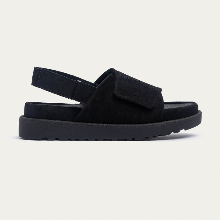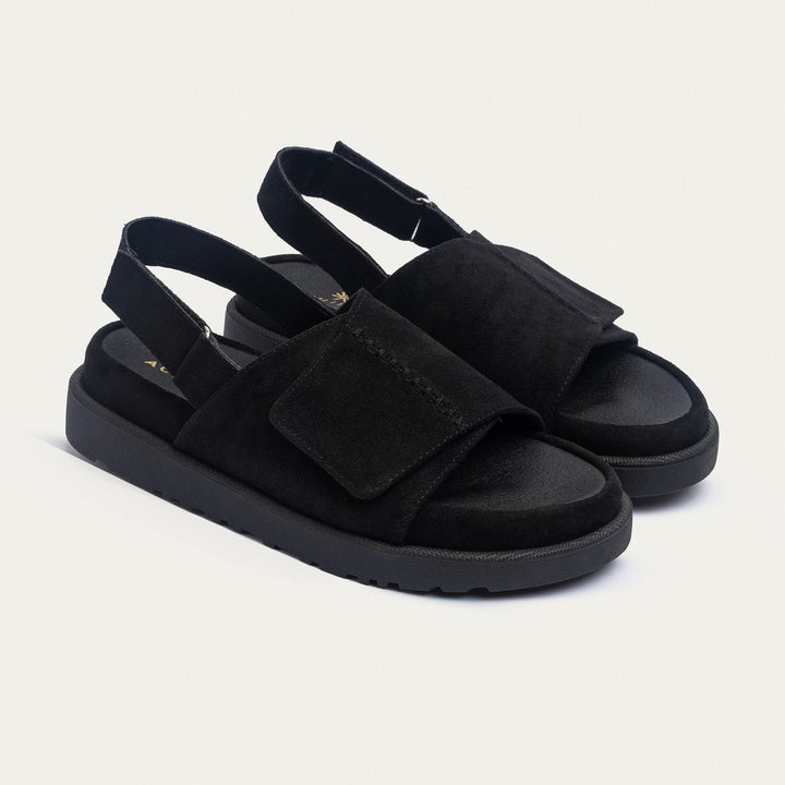 Our Adjustable Strap Sandals offer a comfortable and stylish option for everyday wear. Crafted from rich material, these sandals feature multiple adjustable hook-and-loop straps across the foot and around the ankle, providing a secure and customizable fit. The contrasting light-colored, low platform sole offers subtle elevation and cushioning for all-day comfort. Decorative stitching along the edges of the straps adds a subtle textural detail. These sandals are a versatile choice for various casual occasions.