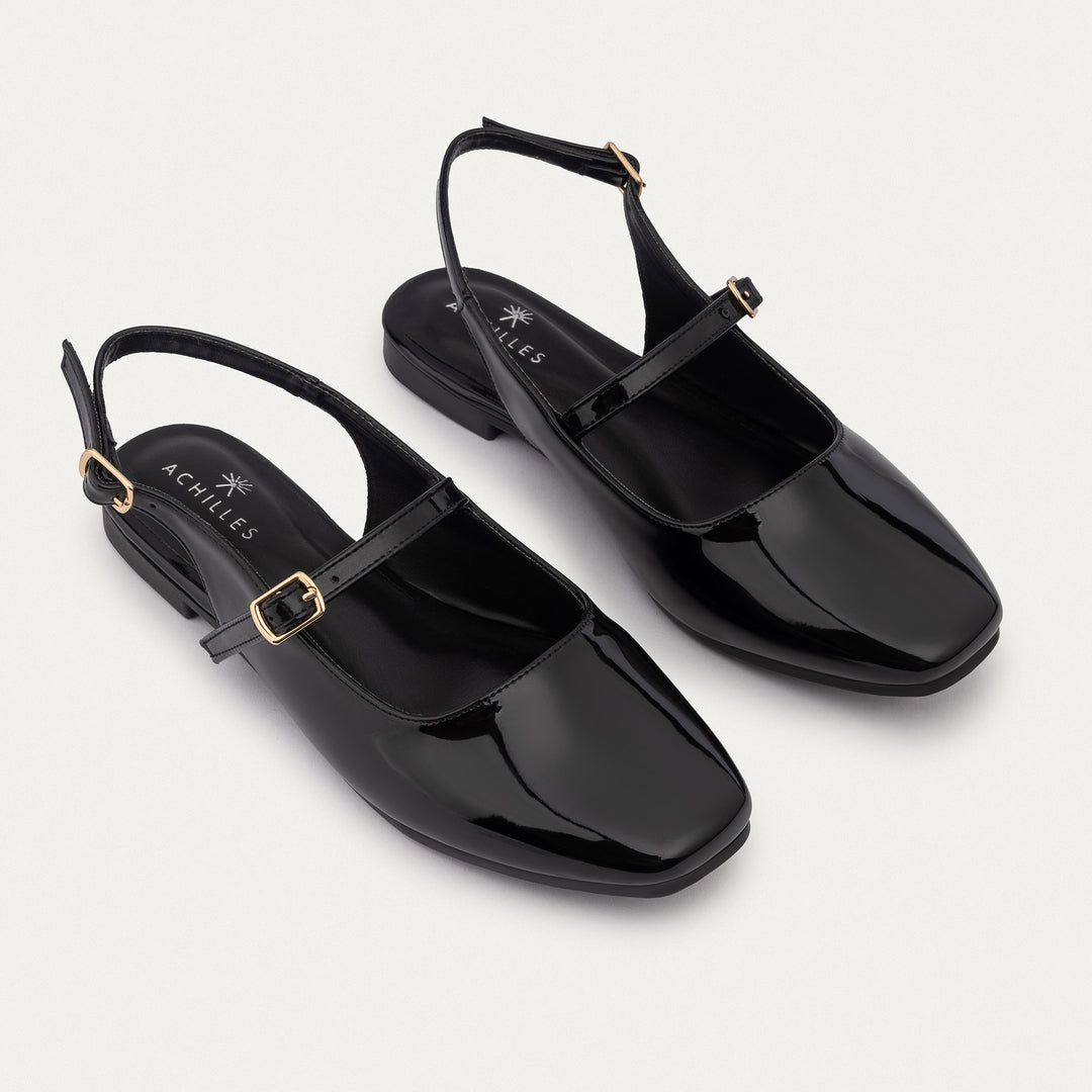 Step into timeless elegance with the Our New Patent Buckle Slingbacks from Achilles a sleek, versatile flat designed for the confident, modern woman. Crafted in high quality faux leather, these sandals deliver a bold statement while maintaining day-to-night comfort. Whether you're dressing for work, a casual outing, or an evening event, these square toe shape flats elevate any look with a sophisticated edge. The minimalist silhouette is enhanced with dual adjustable gold-tone buckles for a secure and stylish fit, while the slingback cutout ensures breathability and freedom of movement.