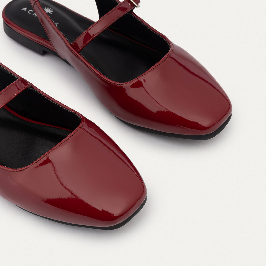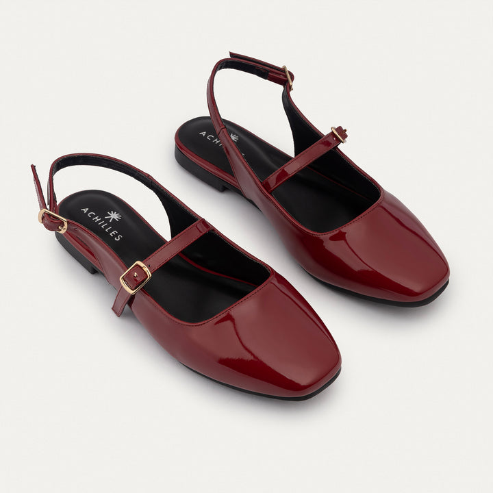 Achilles | Patent Slingback Sandals with Buckle for Women - Crimson Re