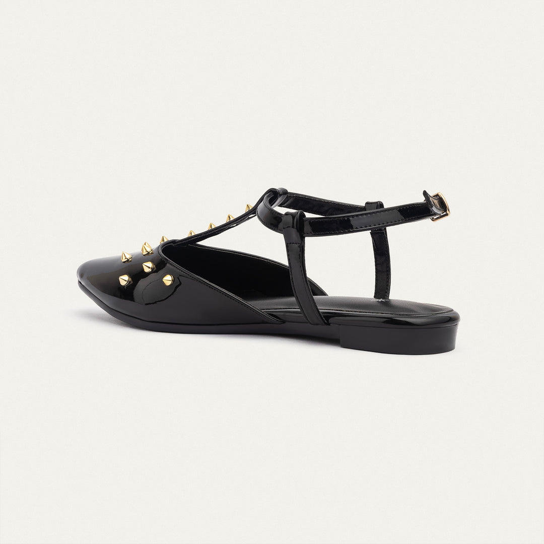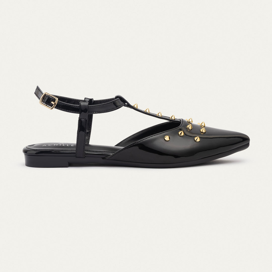 Achilles | Star Stud ankle strap sandals - Glossy Black