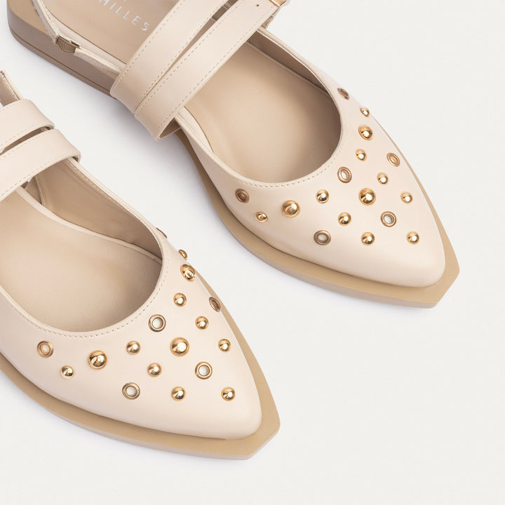 Make a statement in every step — shop the Gilded Stud Slingback collection at Achilles.