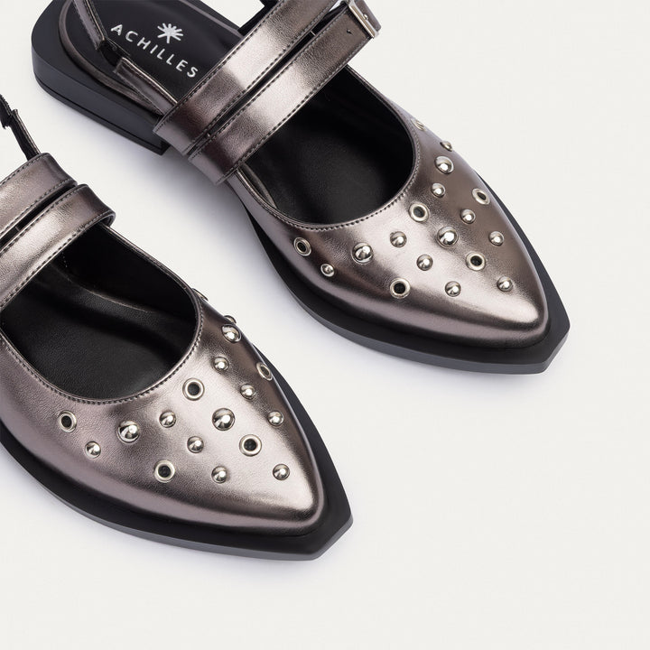 Make a statement in every step — shop the Gilded Stud Slingback collection at Achilles.