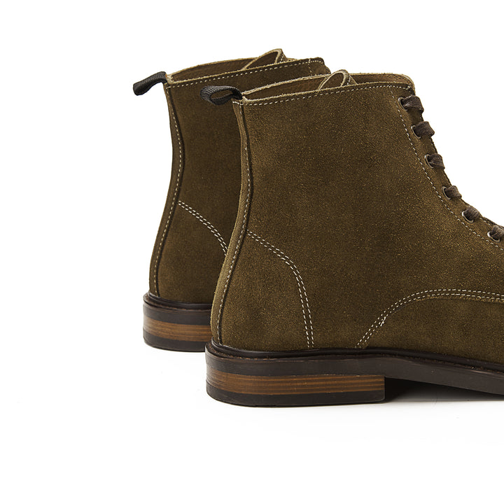 Step out in style with these high-quality suede lace-up half boots made from genuine leather in a luxurious olive hue. Elevate your footwear collection with this versatile and chic pair that combines comfort and style effortlessly.