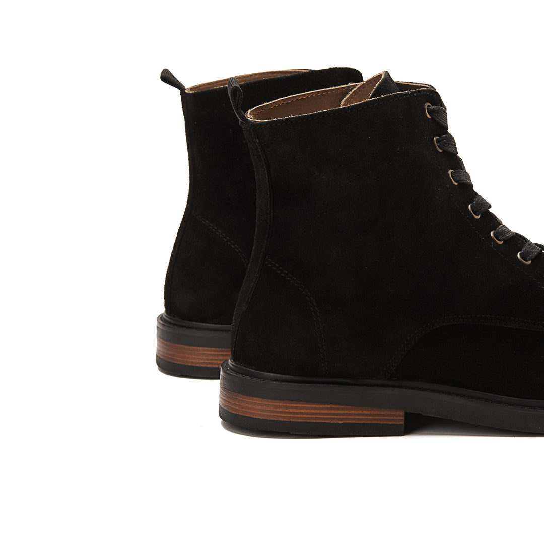 Step out in style with these sleek and sophisticated Suede Lace Up Genuine Leather Half Boots in classic black. Crafted from high-quality genuine leather and featuring a stylish lace-up design, these boots are the perfect combination of fashion and function. Whether you're heading to the office or out for a casual weekend stroll, these boots will elevate your look while providing all-day comfort and support.