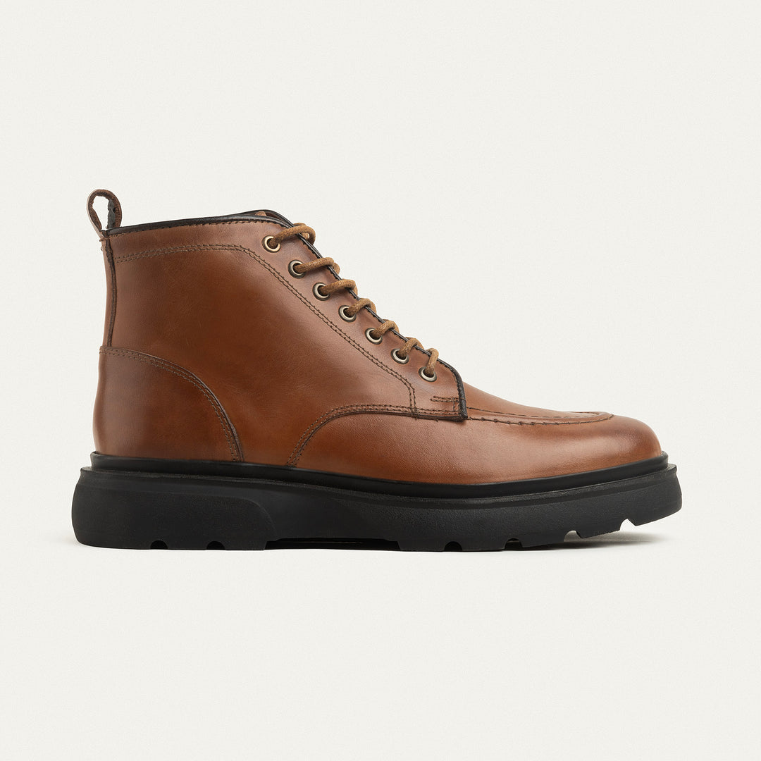 Our new leather boots are a versatile and stylish addition to any man's wardrobe. Crafted from high-quality leather, they feature a sturdy construction and a comfortable fit. The classic lace-up design and mid-calf height make them perfect for both casual and formal occasions. The chunky rubber sole provides excellent traction and durability, while the leather lining ensures all-day comfort.