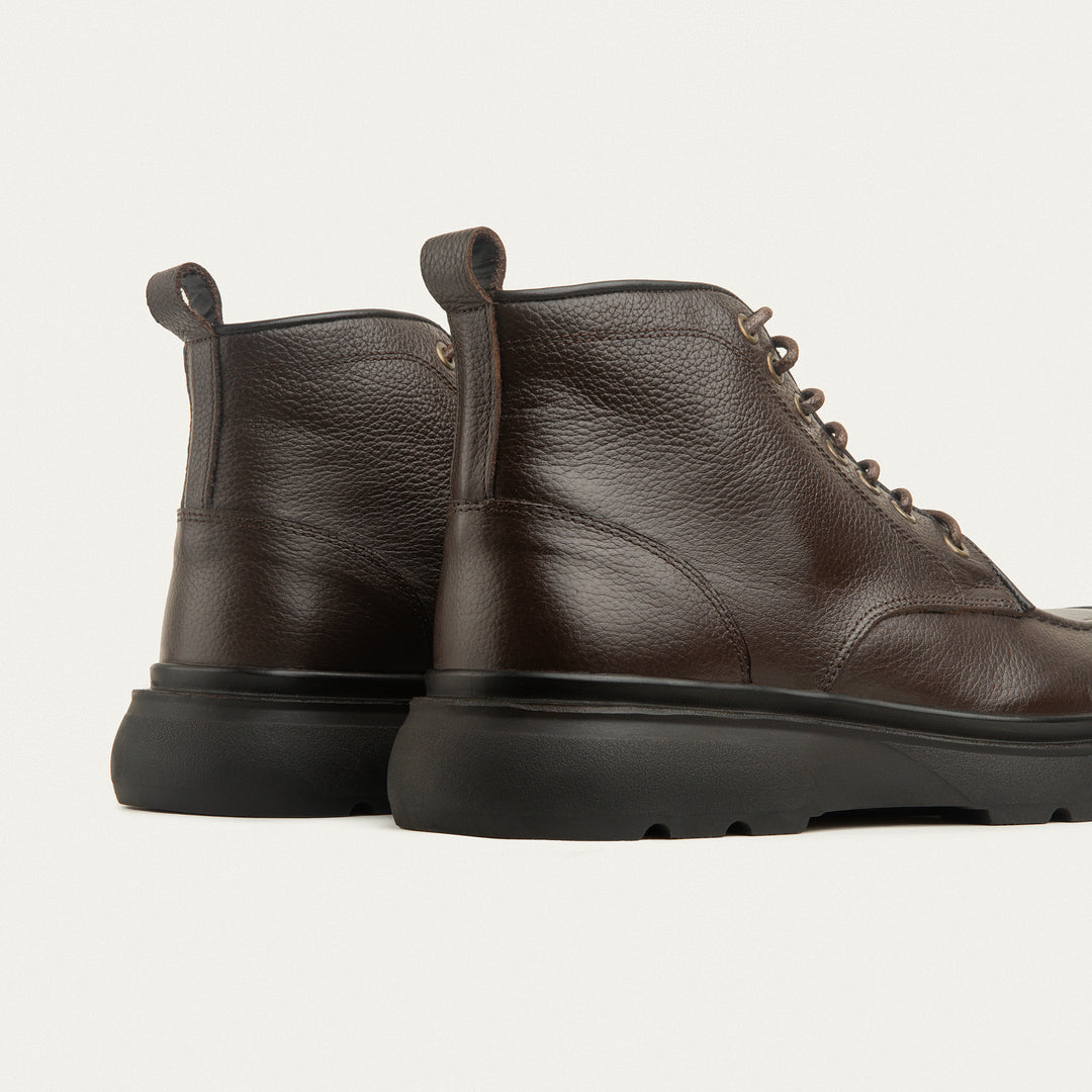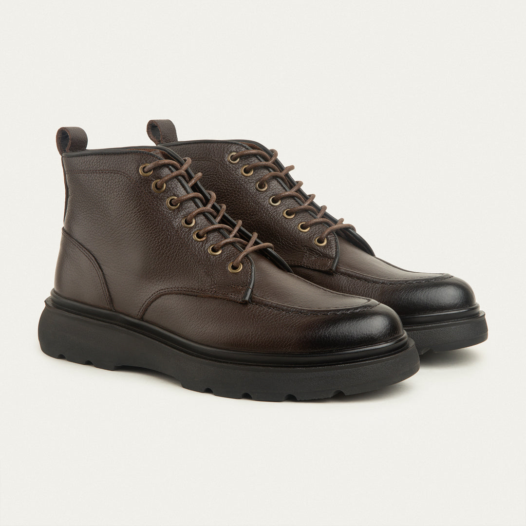 Our new leather boots are a versatile and stylish addition to any man's wardrobe. Crafted from high-quality leather, they feature a sturdy construction and a comfortable fit. The classic lace-up design and mid-calf height make them perfect for both casual and formal occasions. The chunky rubber sole provides excellent traction and durability, while the leather lining ensures all-day comfort.