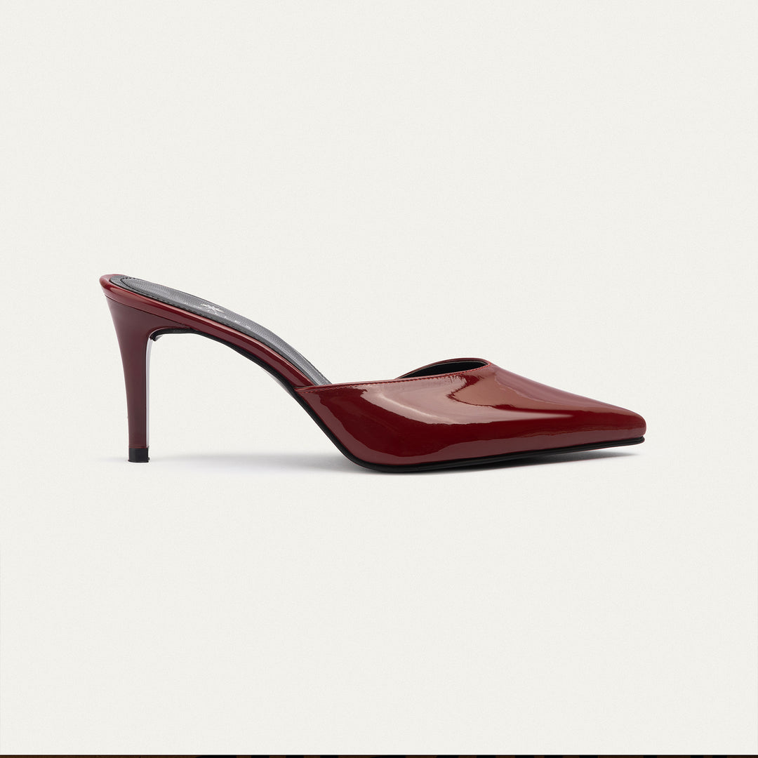 The Cleo mulesآ is a sleek, modern mule that redefines minimalism with its sharp silhouette and glossy black patent finish. Featuring a pointed toe and 7 cm stiletto heel, this backless heel creates a sophisticated statement without sacrificing comfort. Designed for the bold and confident woman, this piece is a versatile staple for evening events or elevated daywear.