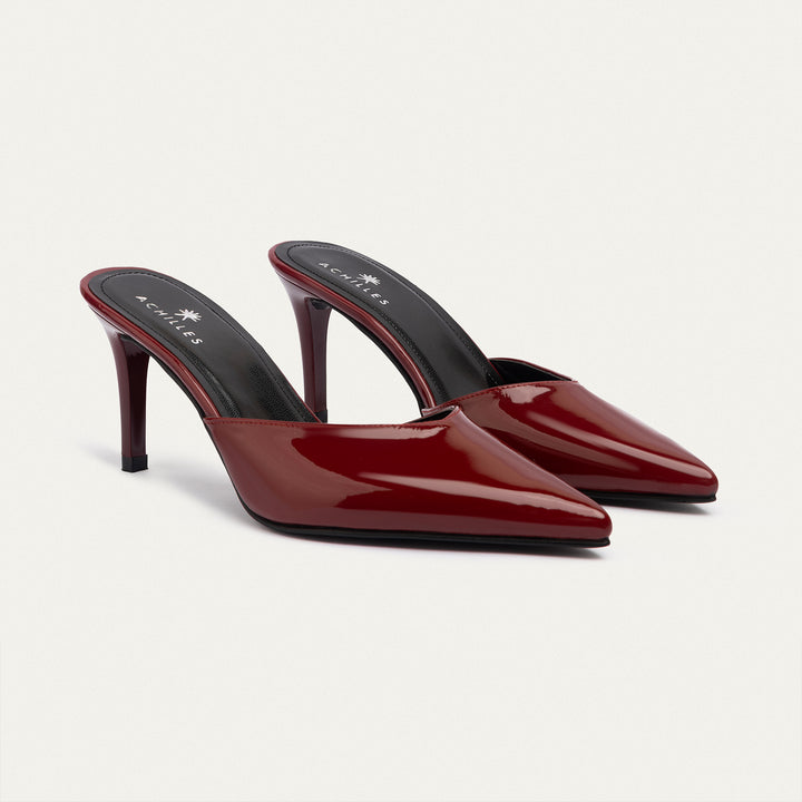Achilles| Cleo Patent Mule Heels - Crimson Red