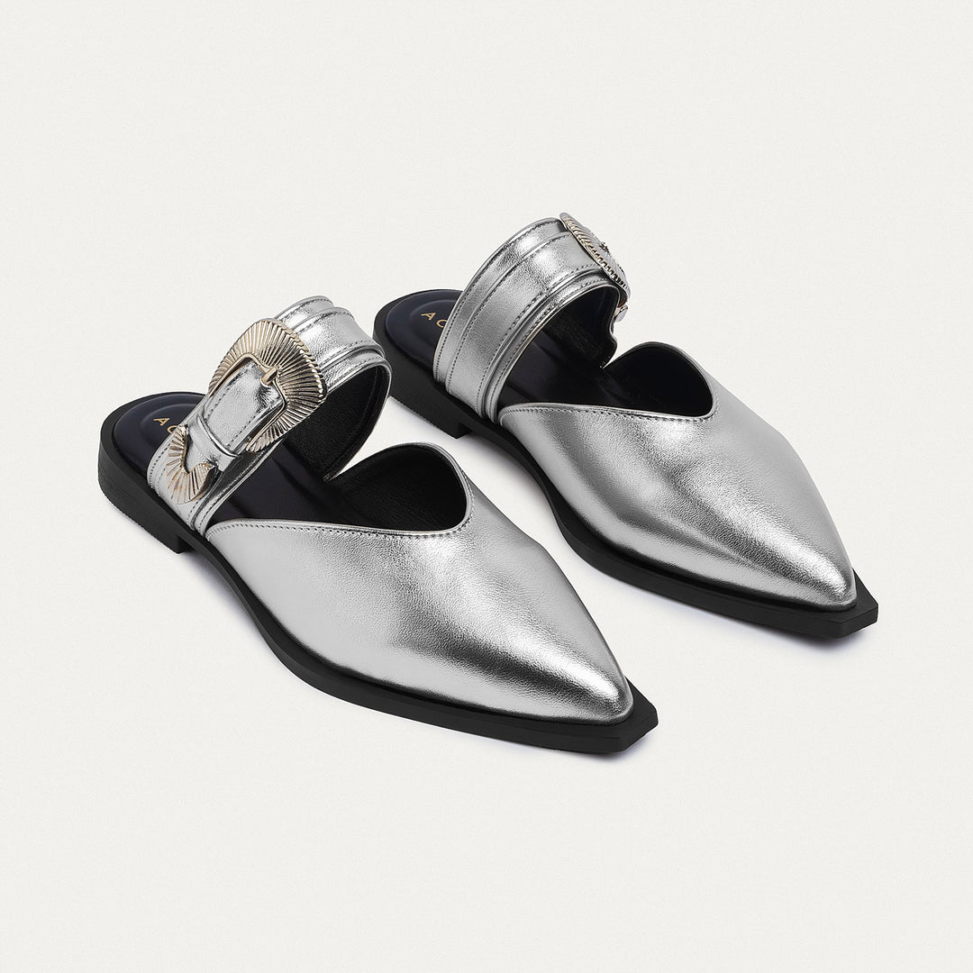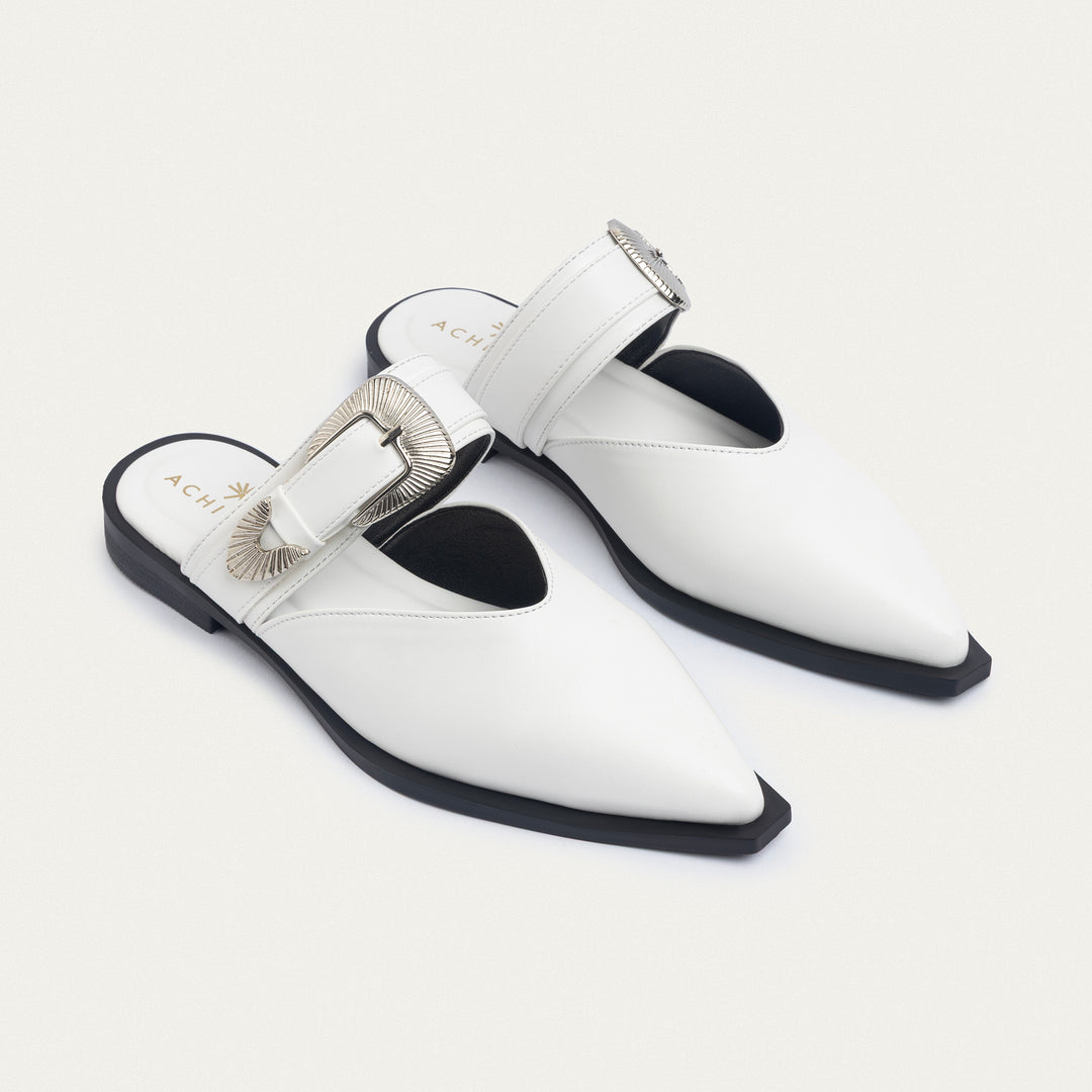 Achilles Premium mules a stylish and versatile addition to your wardrobe. They feature a classic pointed toe and a chunky block heel, adding a touch of edge and sophistication to any outfit. The bold metal strap with studs adds a unique and eye-catching detail, while the sleek black leather creates a timeless and versatile look that can be dressed up or down.