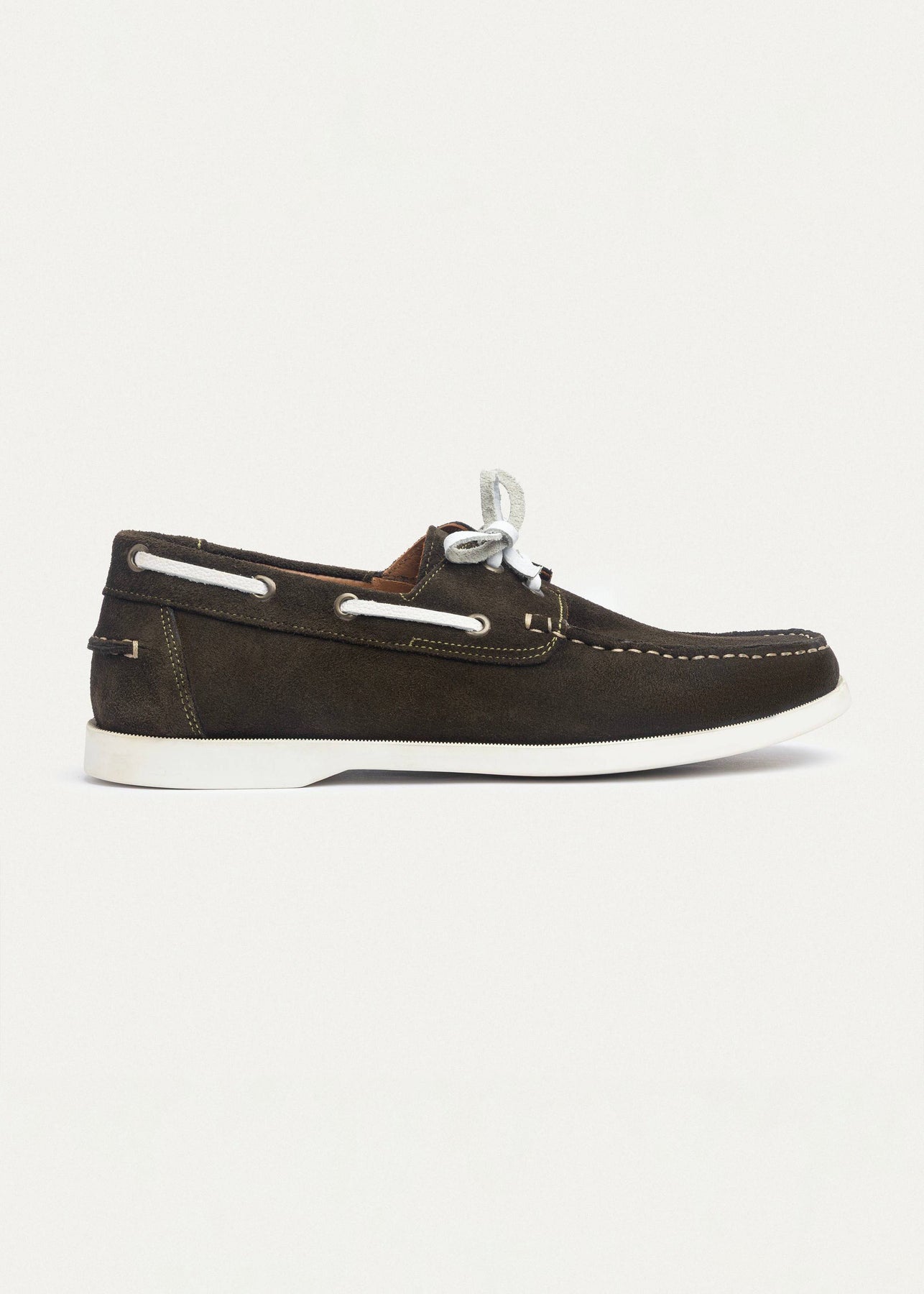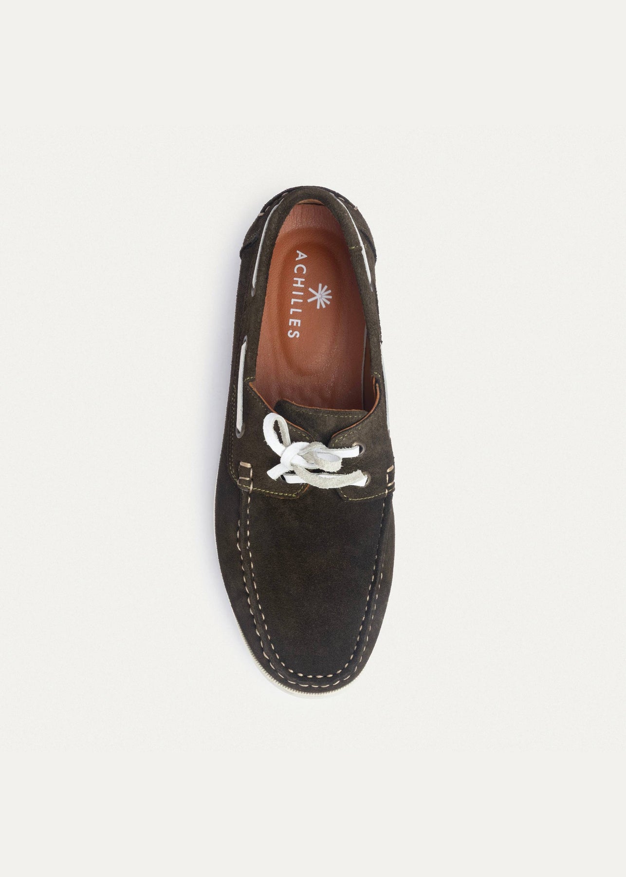 Achilles | Harbor Men’s Leather Boat Shoes -OliveXWhite