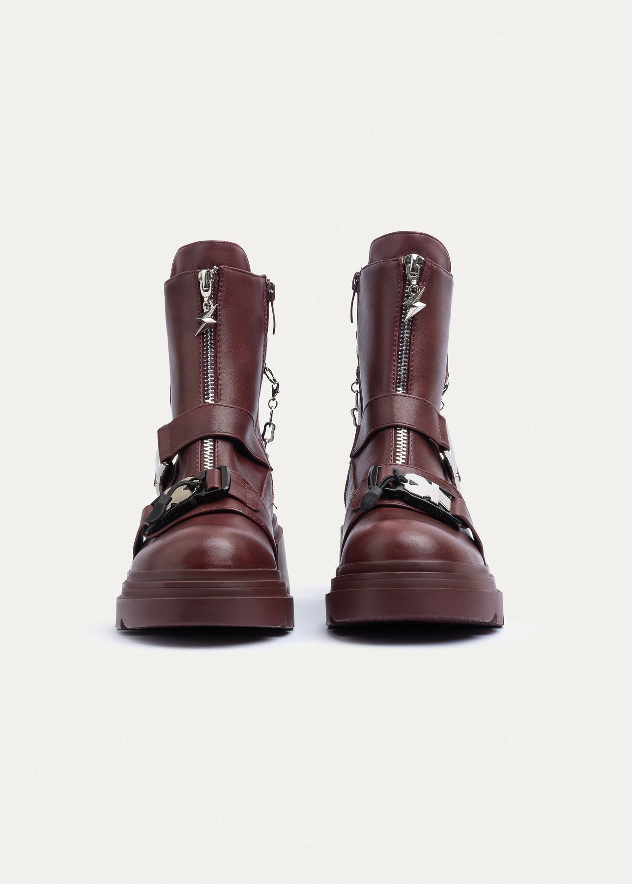 Step into bold expression with the Achilles Vortex Chain Boots — a modern fusion of edgy detailing and confident everyday style.