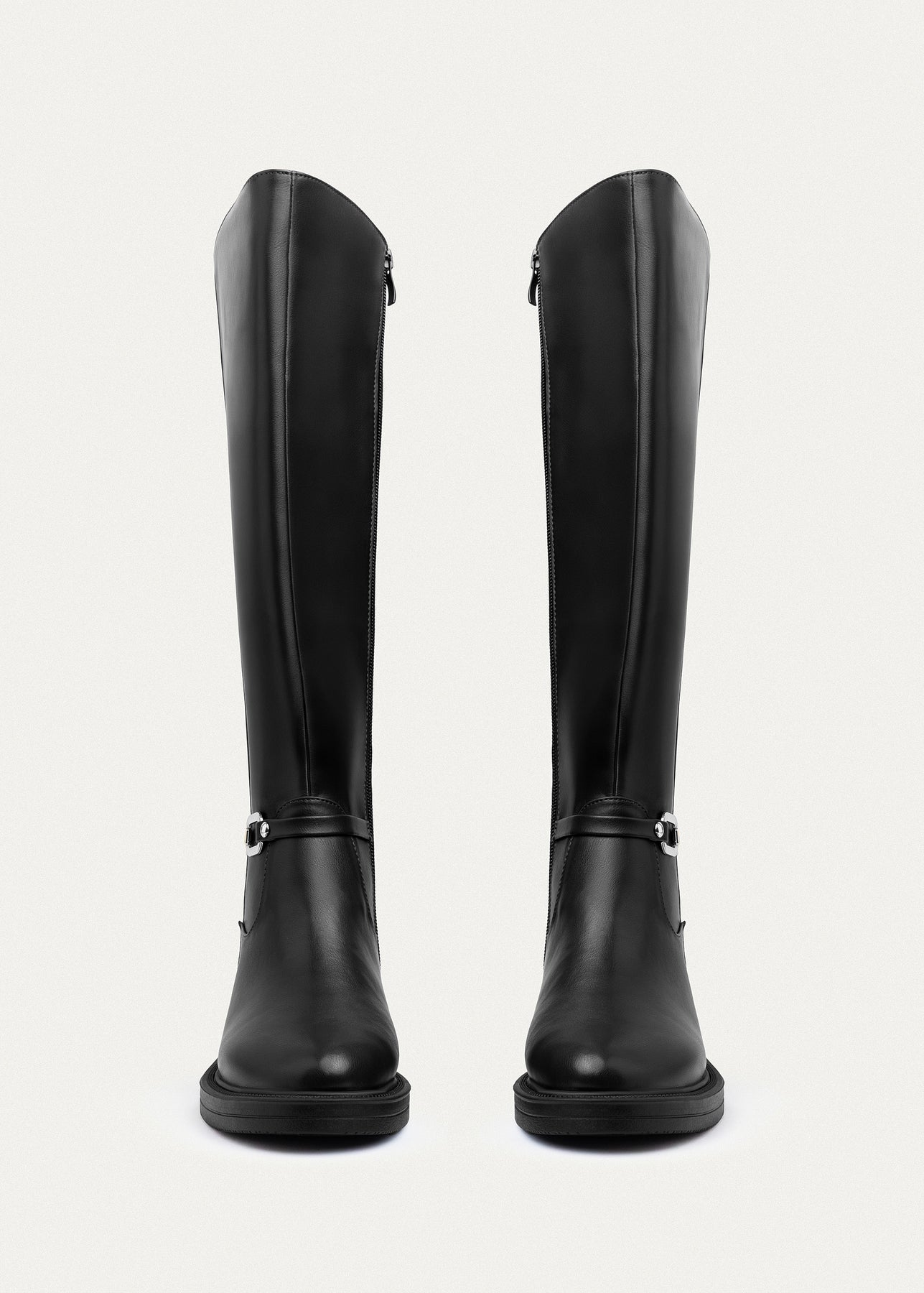 Elevate your winter style with the Achilles Equestria Tall Boots — a timeless design inspired by classic equestrian elegance. Crafted with sleek leather and a refined metallic accent at the ankle, this boot redefines sophistication with a modern twist.