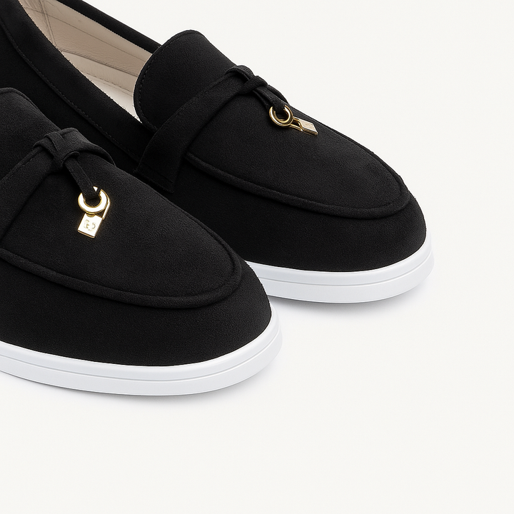 Elevating the timeless loafer with a Mediterranean soul, the Riviera Loafer by Achilles is a refined blend of structure and ease. Featuring a woven raffia body trimmed in vegan leather, this closed-back design brings breathable luxury to your everyday wardrobe. Finished with a signature gold padlock and cushioned footbed, it’s the perfect shoe to transition effortlessly from casual to sophisticated looks.