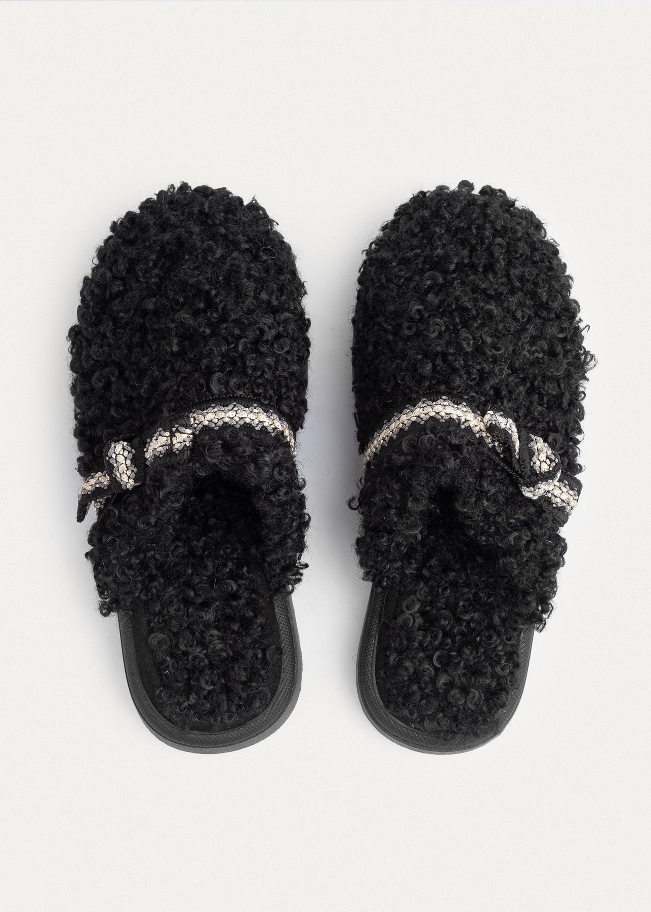 Crafted with plush curly texture and a delicately woven strap accent, Cozy Charm brings a touch of bohemian sophistication to your relaxed days.