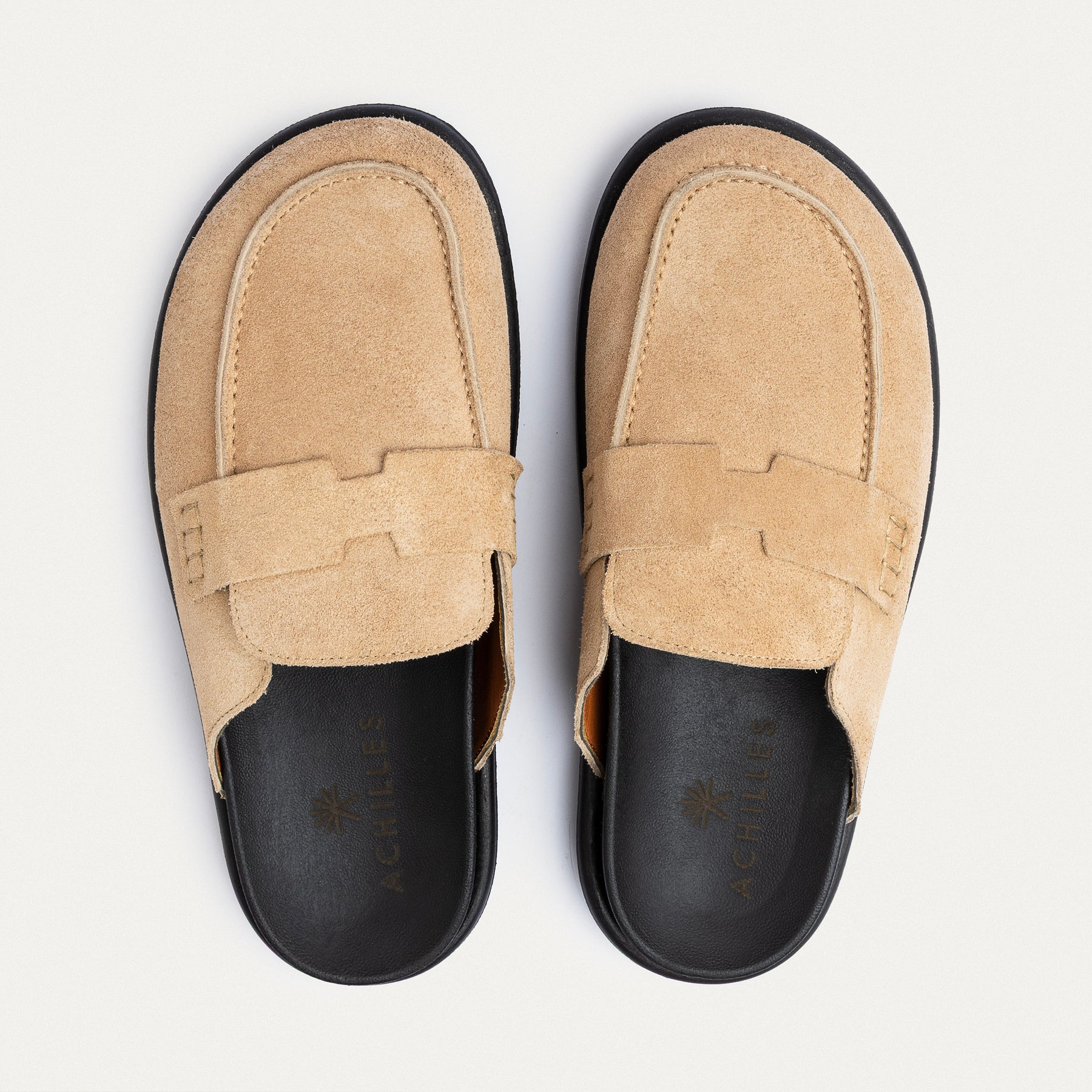 Step into understated elegance with the Achilles Suede Loafer Mules — where modern design meets everyday comfort.