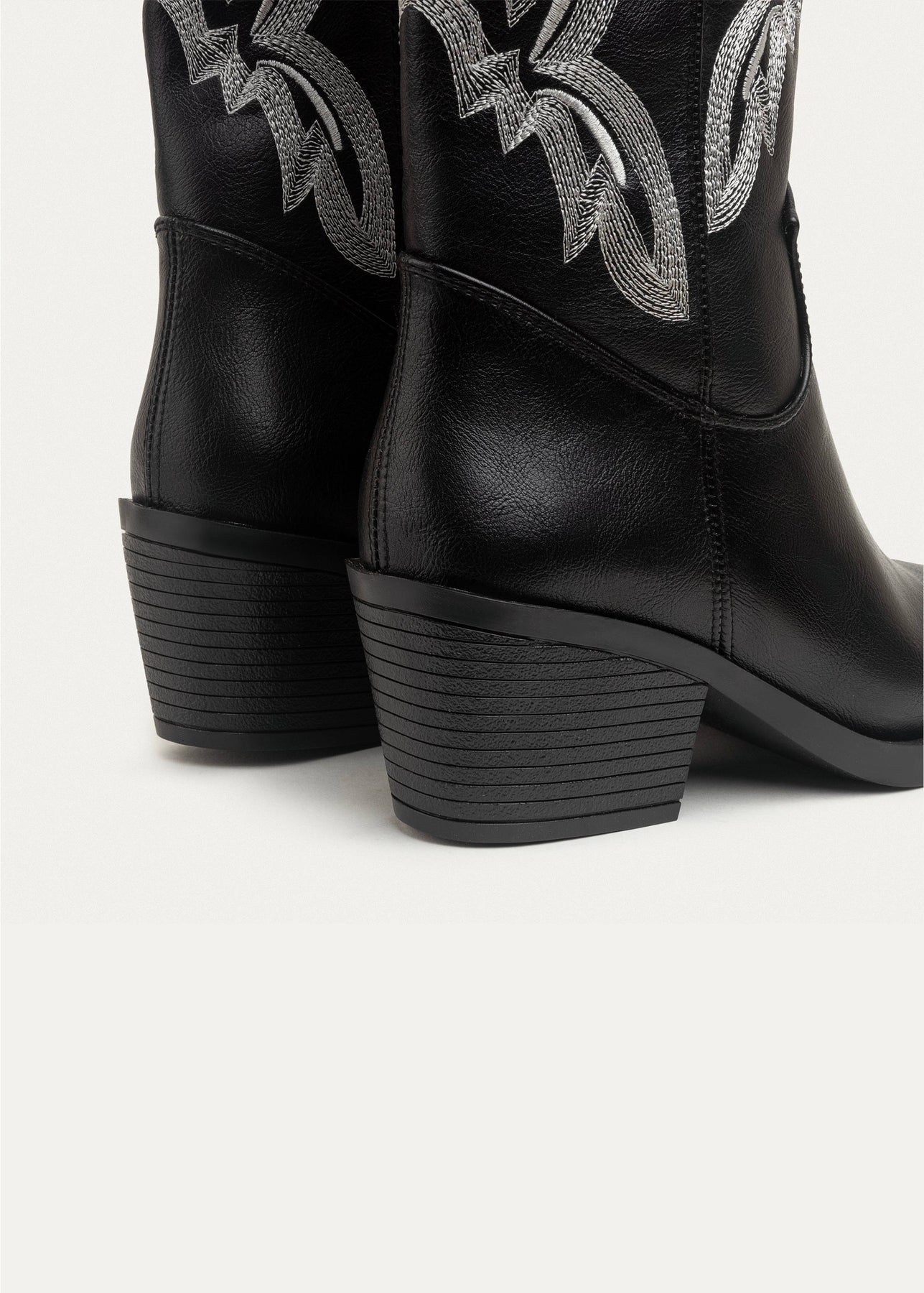 Upgrade your footwear collection with our black faux leather cowboy boots and embrace the timeless appeal of Western style.